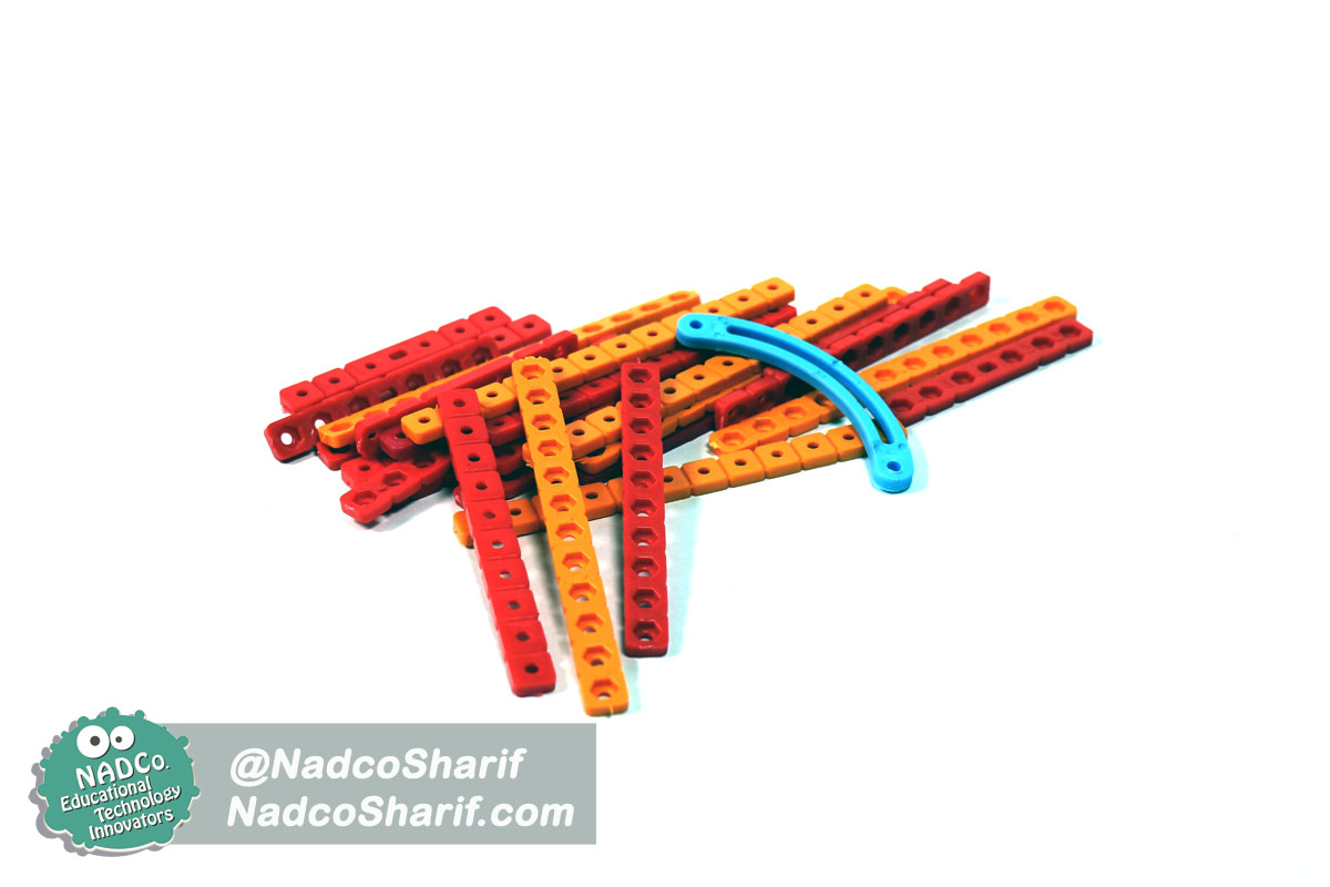 اطلاعات فنی: این قطعه جهت ساخت انواع سازه های مکانیکی و بدنه انواع ربات ها مورد استفاده قرار می گیرد. این المان در اندازه های 12 سانتی متری و 10 سانتی متری و همچنین 7 سانتی متری (که به المان موتور، جهت اتصال به موتورهای تک گیربکس زرد رنگ، معروف است) در بسته المان های تخت موجود می باشد. این المان ها به گونه ایست که در یک سمت محل وارد شدن پیچ و در سمت دیگر محل قرار گیری مهره جهت اتصال محکم می باشد.