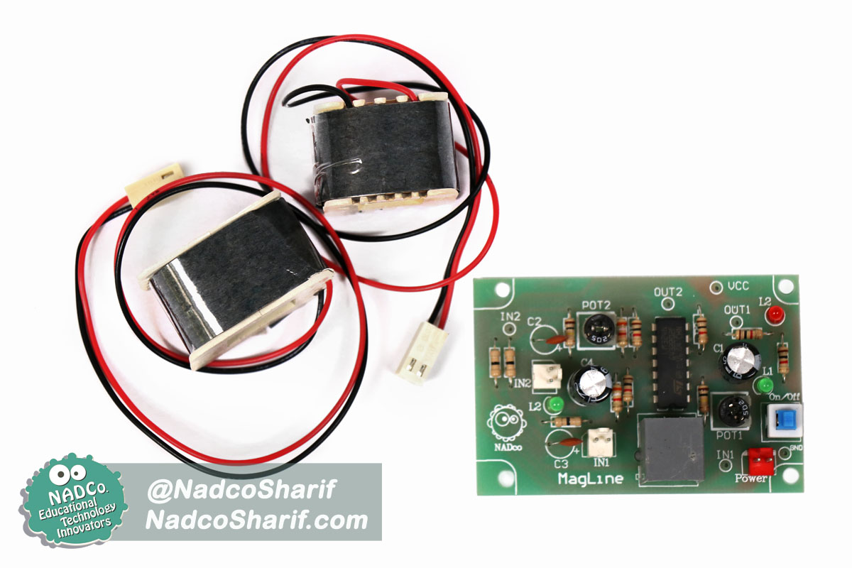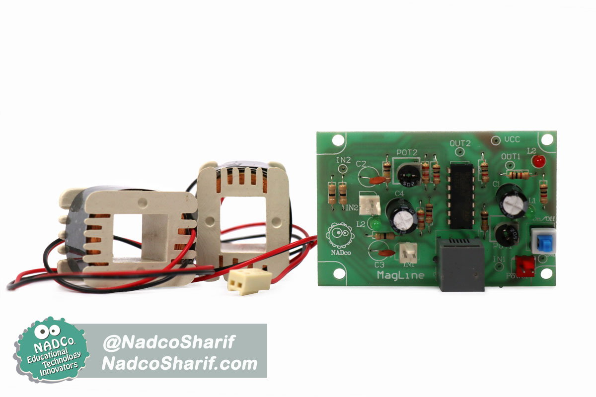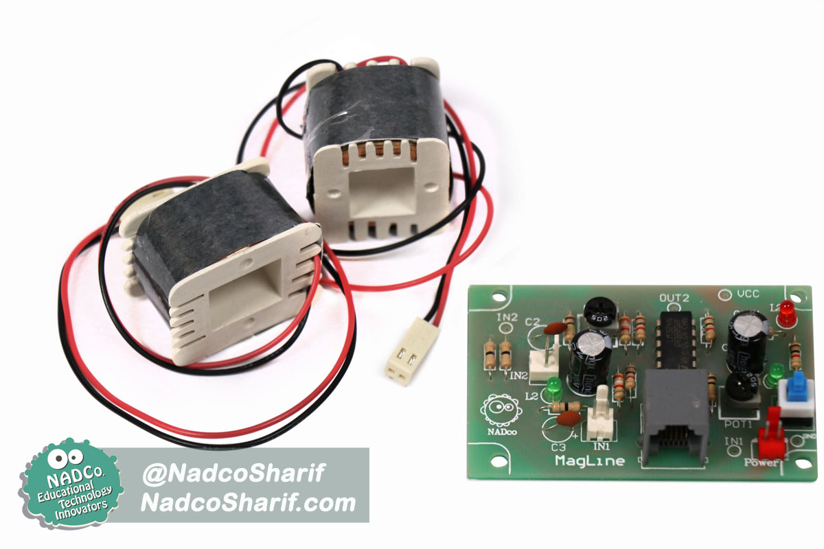 اطلاعات فنی: این بورد سنسوری متشکل از دو سیم پیچ و یک بورد مقایسه ای می باشد که سیم پیچ ها به عنوان ورودی به بورد متصل می شوند. با قرار گرفتن این سیم پیچ ها در نزدیکی یک سیم حامل جریان یک میدان مغناطیسی ایجاد می شود که این میدان به عنوان دیتای ورودی به بورد می باشد و می توان با کمک پتانسیومترهای موجود بر روی بورد این میدان مغناطیسی را به صورت یک دیتای دیجیتال تبدیل نمود و 1 و صفر بودن دیتا را مشخص نمود. حال می توان با کمک این تشخیص میدان یک ربات تعقیب خط مغناطیسی را راه اندازی نمود.