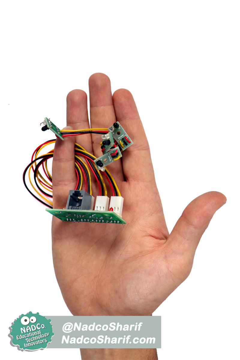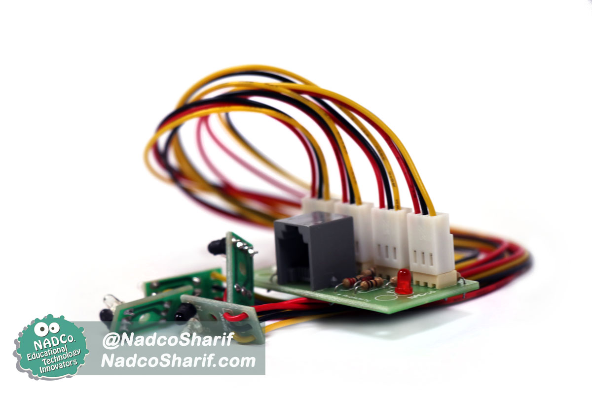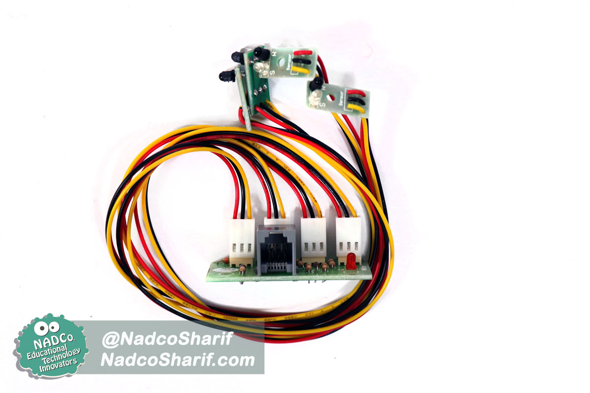 اطلاعات فنی: این بورد سنسوری شامل 4 فرستنده گیرنده مادون قرمز می باشد. این بورد سنسوری را می توان بر روی بوردهای هوشمند روبورو، مکاترو و الکترو استفاده نمود. برای تشخیص مانع در ربات حل ماز بدون تماسی کاربرد مناسبی دارد. این بورد از طریق یک کابل دیتای 6 پین کوتاه به بوردهای هوشمند متصل شده و داده ها را انتقال می دهد. سنسورهای روی بورد از چپ به راست به ترتیب از 1 تا 4 شماره گذاری می شوند.