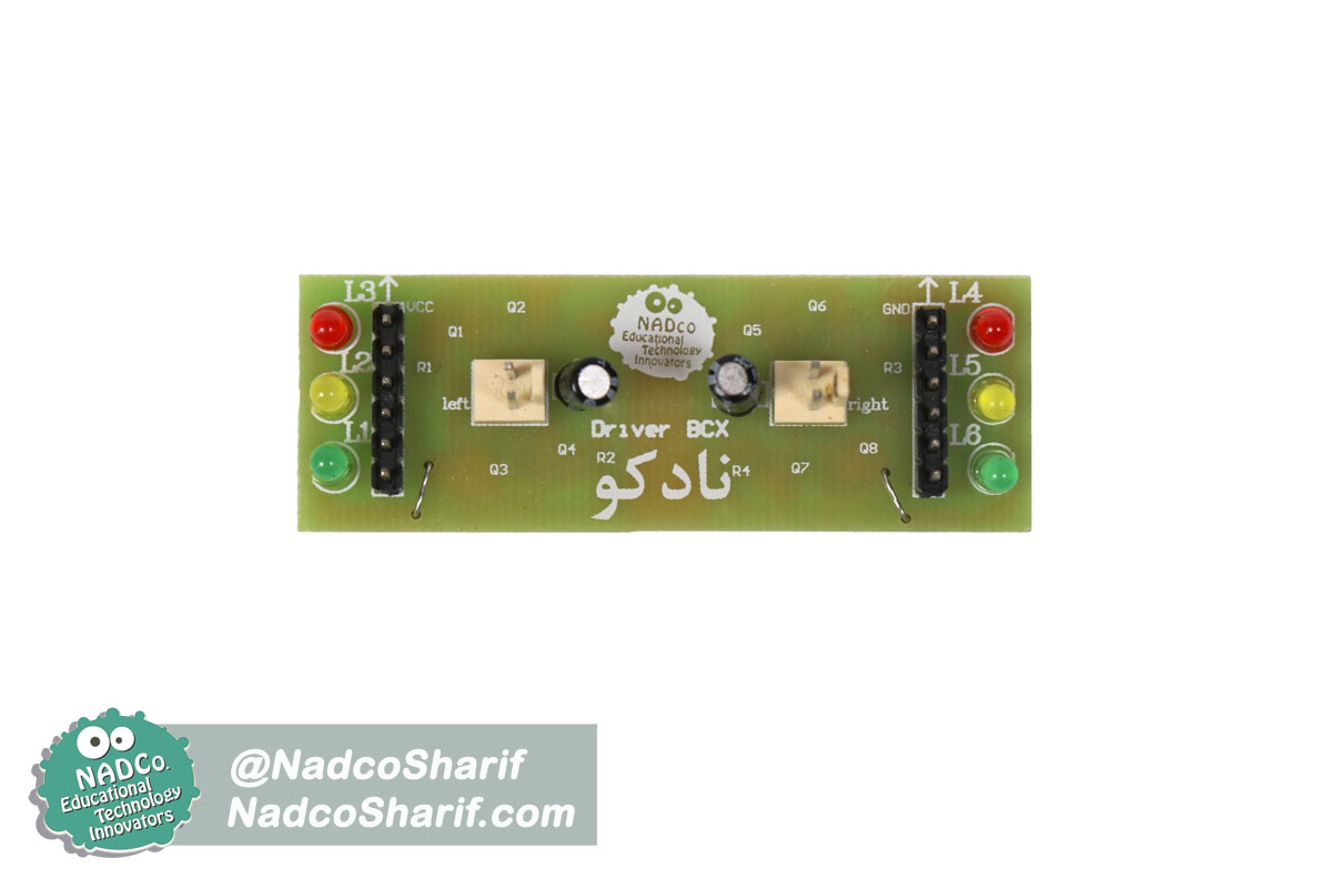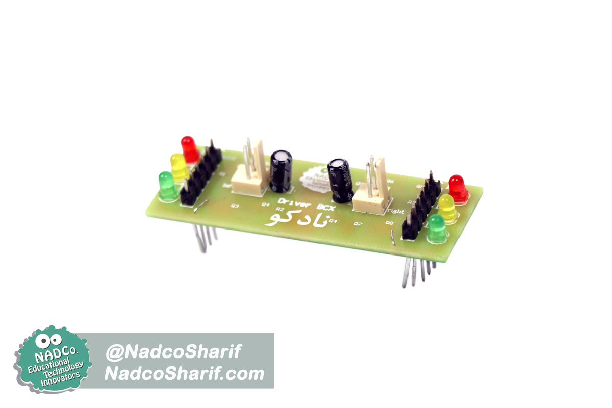 فرآیند تست: در زمان قرار گیری درایور بر روی بوردهای روبورو، مکاترو و یا الکترو و در هنگام انتقال برنامه به بوردها، ال ای دی های روی درایور به صورت ساعتگرد روشن خاموش می شوند. با نوشتن دستور motor 100 و اتصال دو پین موتور به درایور باید موتور ساعتگرد و با نوشتن دستور motor -100 در جهت پاد ساعتگرد شروع به چرخش نماید.
